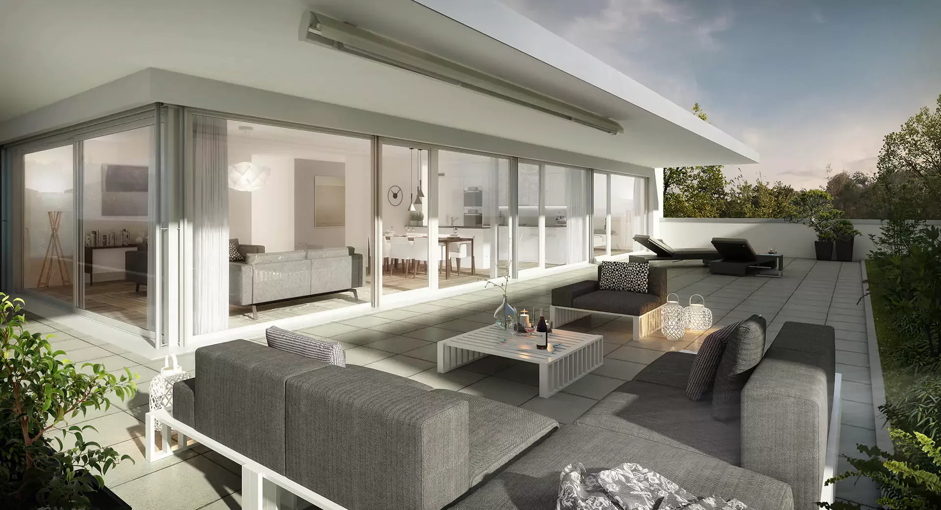 The charming, two-storey residential buildings have two 3½-room apartments, two 4½-room apartments and one 5½-room apartment on the ground floor, all with direct access to cosy, sheltered seating areas. Attractive 4½- and 5½-room apartments with spacious, sheltered terraces of up to 127 m² have been created on the top floor. Both the seating areas and the terraces are equipped with sun awnings to provide pleasant shade. Each apartment has two bathrooms, its own washing machine and tumble dryer, a comfort ventilation system and a cellar compartment, guaranteeing a high level of living comfort.