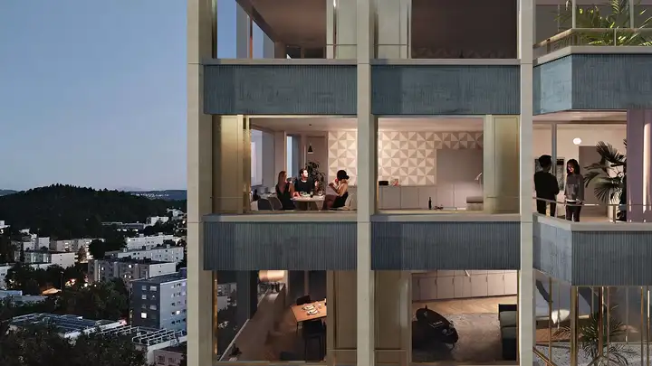 A vibrant residential and commercial building is being built in a prime location right next to Effretikon railway station.